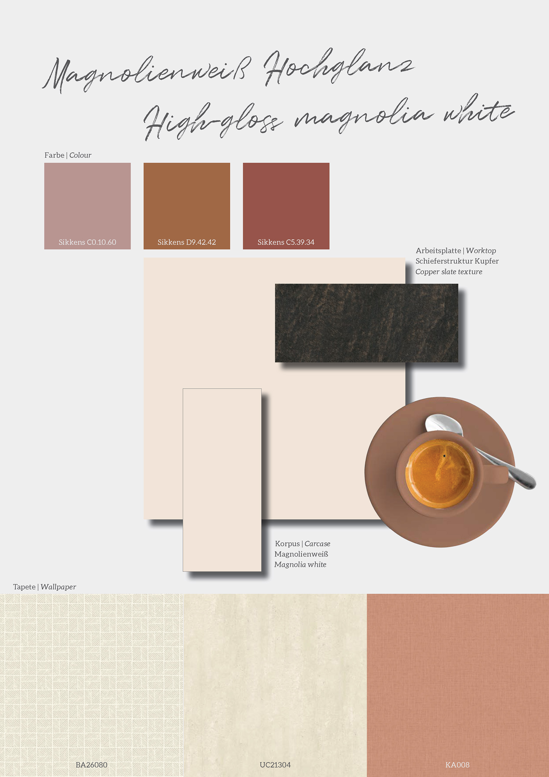 Bei der Küchen- und Einrichtungsplanung lassen sich unsere Moodboards sinnvoll einbinden. Sie unterstreichen ein ausgeprägtes Stil- und Trendbewusstsein und dienen als praktische Orientierungshilfe. Ob puristisch oder verspielt, glamourös oder naturverbunden – Moodboards sind Inspirationsquelle und Impulsgeber in einem. Wir wünschen viel Erfolg beim gemeinsamen Planen!
